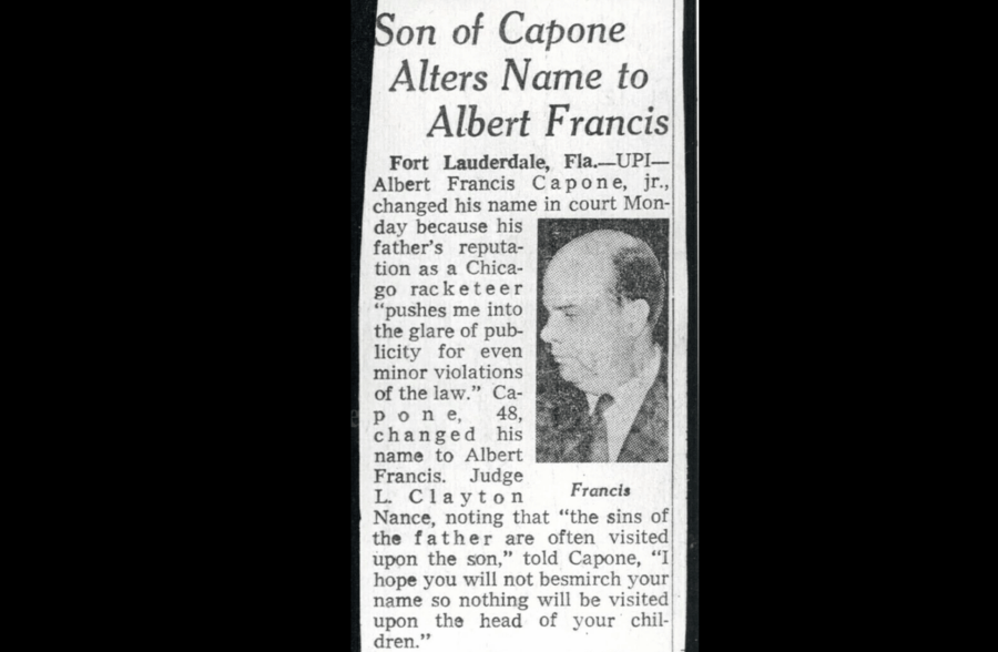 Public DomainAlbert Francis Capone'un isim değişikliğini duyuran bir gazete kupürü.