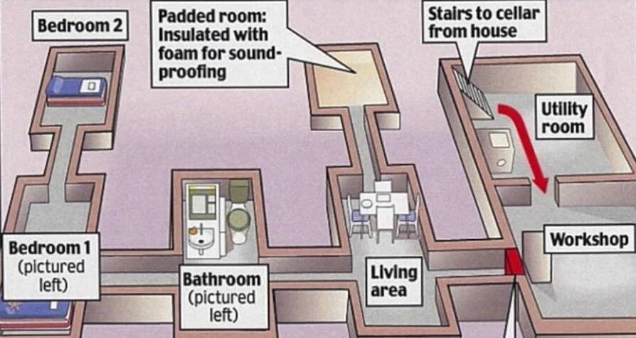 YouTubeElisabeth Fritzl'in hapsedildiği mahzenin düzeni.