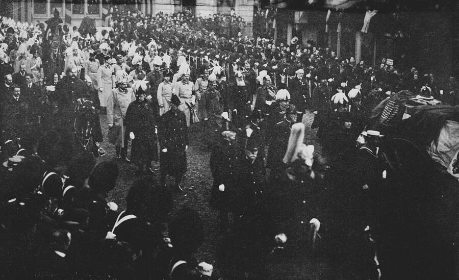 Kraliçenin cenazesi 2 Şubat 1901'de, Avrupa kraliyetinin en büyük toplanmalarından biri olarak gerçekleşti. Victoria, "Avrupa'nın Büyükannesi" olarak biliniyordu çünkü dokuz çocuğu, 42 torunu ve 87 torununun çoğu, kıtanın diğer monarşilerine evlenmişti.